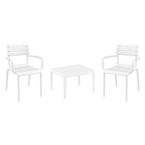 Paris arm chairs and Sky 24" side table 3 piece conversation set in white is stylish and comfortable set for your small outdoor space! Made from durable and weather-resistant polypropylene resin, this set is perfect for balconies, terraces, decks, rooftops and patios. Paris arm chairs feature a comfortable seat and backrest, making them the perfect choice for relaxing with a good book or enjoying a drink with a loved one. Two people can easily enjoy a refreshing drink together at Sky 24" side table.