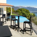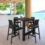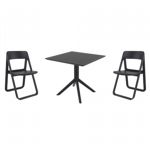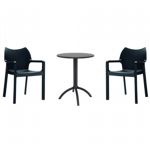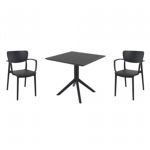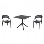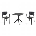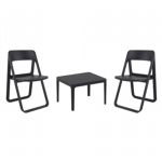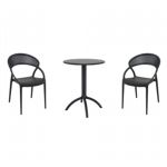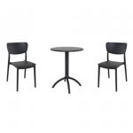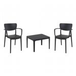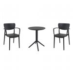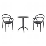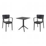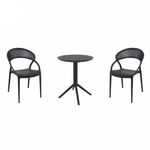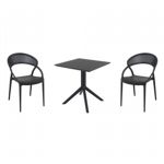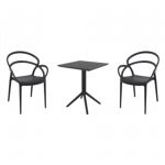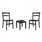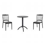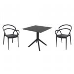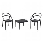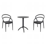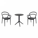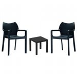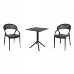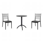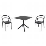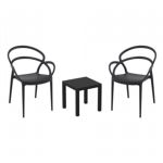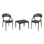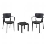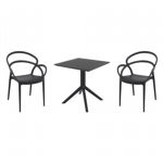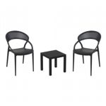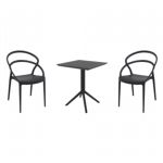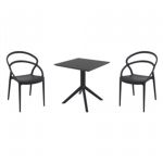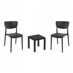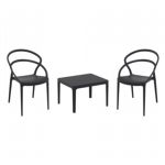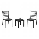 Pia chairs and Ocean side table 3 piece conversation set in black is stylish and comfortable set for your small outdoor space! Made from durable and weather-resistant polypropylene resin, this set is perfect for balconies, terraces, decks, rooftops and patios. Pia chairs feature a comfortable seat and backrest, making them the perfect choice for relaxing with a good book or enjoying a drink with a loved one. Two people can easily enjoy a refreshing drink together at Ocean side table.