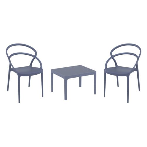Pia chairs and Sky 24" side table 3 piece conversation set in dark gray is stylish and comfortable set for your small outdoor space! Made from durable and weather-resistant polypropylene resin, this set is perfect for balconies, terraces, decks, rooftops and patios. Pia chairs feature a comfortable seat and backrest, making them the perfect choice for relaxing with a good book or enjoying a drink with a loved one. Two people can easily enjoy a refreshing drink together at Sky 24" side table.