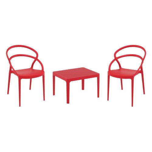 Pia chairs and Sky 24" side table 3 piece conversation set in red is stylish and comfortable set for your small outdoor space! Made from durable and weather-resistant polypropylene resin, this set is perfect for balconies, terraces, decks, rooftops and patios. Pia chairs feature a comfortable seat and backrest, making them the perfect choice for relaxing with a good book or enjoying a drink with a loved one. Two people can easily enjoy a refreshing drink together at Sky 24" side table.