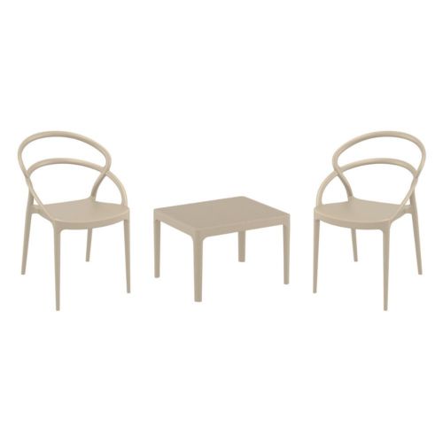 Pia chairs and Sky 24" side table 3 piece conversation set in taupe is stylish and comfortable set for your small outdoor space! Made from durable and weather-resistant polypropylene resin, this set is perfect for balconies, terraces, decks, rooftops and patios. Pia chairs feature a comfortable seat and backrest, making them the perfect choice for relaxing with a good book or enjoying a drink with a loved one. Two people can easily enjoy a refreshing drink together at Sky 24" side table.