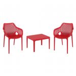 Sky arm chairs and Sky 24" side table 3 piece conversation set in red is stylish and comfortable set for your small outdoor space! Made from durable and weather-resistant polypropylene resin, this set is perfect for balconies, terraces, decks, rooftops and patios. Sky arm chairs feature a comfortable seat and backrest, making them the perfect choice for relaxing with a good book or enjoying a drink with a loved one. Two people can easily enjoy a refreshing drink together at Sky 24" side table.