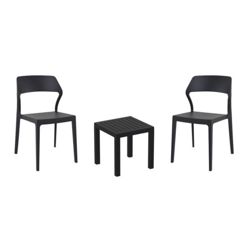 Snow chairs and Ocean side table 3 piece conversation set in black is stylish and comfortable set for your small outdoor space! Made from durable and weather-resistant polypropylene resin, this set is perfect for balconies, terraces, decks, rooftops and patios. Snow chairs feature a comfortable seat and backrest, making them the perfect choice for relaxing with a good book or enjoying a drink with a loved one. Two people can easily enjoy a refreshing drink together at Ocean side table.