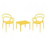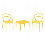 Snow chairs and Sky 24" side table 3 piece conversation set in yellow is stylish and comfortable set for your small outdoor space! Made from durable and weather-resistant polypropylene resin, this set is perfect for balconies, terraces, decks, rooftops and patios. Snow chairs feature a comfortable seat and backrest, making them the perfect choice for relaxing with a good book or enjoying a drink with a loved one. Two people can easily enjoy a refreshing drink together at Sky 24" side table.