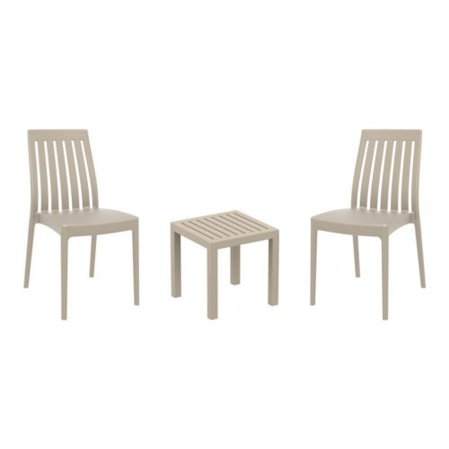 Soho chairs and Ocean side table 3 piece conversation set in taupe is stylish and comfortable set for your small outdoor space! Made from durable and weather-resistant polypropylene resin, this set is perfect for balconies, terraces, decks, rooftops and patios. Soho chairs feature a comfortable seat and backrest, making them the perfect choice for relaxing with a good book or enjoying a drink with a loved one. Two people can easily enjoy a refreshing drink together at Ocean side table.