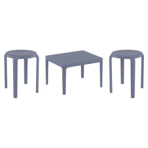 Tom chairs and Sky 24" side table 3 piece conversation set in dark gray is stylish and comfortable set for your small outdoor space! Made from durable and weather-resistant polypropylene resin, this set is perfect for balconies, terraces, decks, rooftops and patios. Tom chairs feature a comfortable seat and backrest, making them the perfect choice for relaxing with a good book or enjoying a drink with a loved one. Two people can easily enjoy a refreshing drink together at Sky 24" side table.