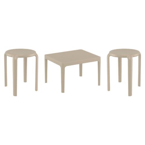 Tom chairs and Sky 24" side table 3 piece conversation set in taupe is stylish and comfortable set for your small outdoor space! Made from durable and weather-resistant polypropylene resin, this set is perfect for balconies, terraces, decks, rooftops and patios. Tom chairs feature a comfortable seat and backrest, making them the perfect choice for relaxing with a good book or enjoying a drink with a loved one. Two people can easily enjoy a refreshing drink together at Sky 24" side table.
