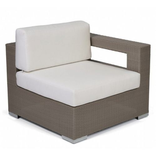 10Tierra wicker deep seating sectional left module. Contemporary patio furniture design. Made from all weather outdoor wicker over strong powder coated aluminum frame. Maintenance free. Can be washed down with water. Totally outdoor resistant. Cushions are made from 100% Sunbrella fabric and durable for outdoor use. Seat and back cushions included. Wicker available in Moccachino only. Cushions are 5 inch thick. Sunbrella fabric is available in multiple colors and patterns.