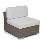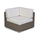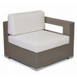 10Tierra wicker deep seating sectional right module. Contemporary patio furniture design. Made from all weather outdoor wicker over strong powder coated aluminum frame. Maintenance free. Can be washed down with water. Totally outdoor resistant. Cushions are made from 100% Sunbrella fabric and durable for outdoor use. Seat and back cushions included. Wicker available in Moccachino only. Cushions are 5 inch thick. Sunbrella fabric is available in multiple colors and patterns.