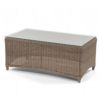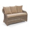 Amelie wicker club seating set with one loveseat, two club chairs and one rectangle coffee table. Traditional patio furniture design. Made from all weather outdoor wicker over strong powder coated aluminum frame. Maintenance free. Can be washed down with water. Totally outdoor resistant. Cushions are made from 100% Sunbrella fabric and durable for outdoor use. Seat and back cushions included. Cushions are 2 inch thick. Sunbrella fabric is available in multiple colors and patterns.