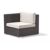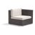 Dijon outdoor wicker deep seating set. Patio set includes one corner unit, one left arm, one right arm, two middle section and one rectangle coffee table. Contemporary and modern patio furniture design. Made from all weather outdoor wicker over strong extruded powder coated aluminum frame. Maintenance free. Can be washed down with water. Totally outdoor resistant. Table has a glass top. Cushions are made from 100% acrylic fabric and durable for outdoor use. Seat and back cushions included. Wicker available in Espresso only. Cushions are 4 inch thick.