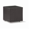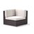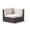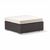 Dijon outdoor wicker sectional lounge seating set includes four corner units five ottomans and two side tables. Contemporary and modern patio furniture design. Made from all weather outdoor wicker over strong extruded powder coated aluminum frame. Maintenance free. Can be washed down with water. Totally outdoor resistant. Table has a glass top. Cushions are made from 100% acrylic fabric and durable for outdoor use. Seat and back cushions included. Wicker available in Espresso only. Cushions are 4 inch thick.