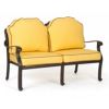 Florence cast aluminum outdoor deep seating group with two club chairs, one love seat and one rectangle coffee table. Traditional Mediterranean design garden deep seating arrangement for four persons. Strong cast aluminum structure with four inch Sunbrella seat cushions. Outdoor group is made of high quality cast aluminum and is triple polished with a powder coated paint and an antique finish. Cast aluminum won't chip, flake or scratch. Perfect for outdoors, garden and patio. Color: Desert Bronze. Cushions are made of Sunbrella fabric and available in multiple colors. Cushion included in price.