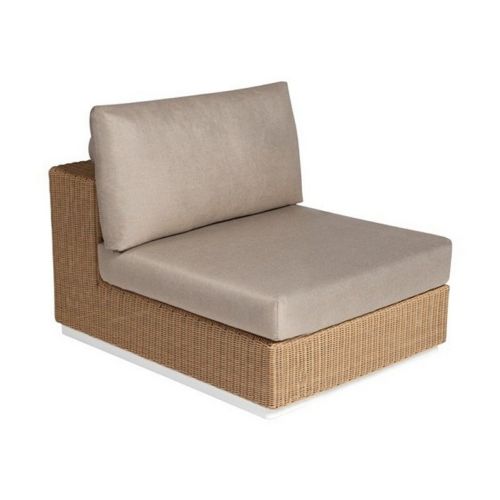 Hardy outdoor sectional from Triconfort. Offers five star luxury. Contemporary and modern outdoor furniture design. Made from synthetic outdoor wicker over aluminum tubing. Maintenance free. Very strong. Can be washed down with water. Totally outdoor resistant. Cushions are made from Sunbrella fabric and durable for outdoor use. 5 inch thick cushions included.