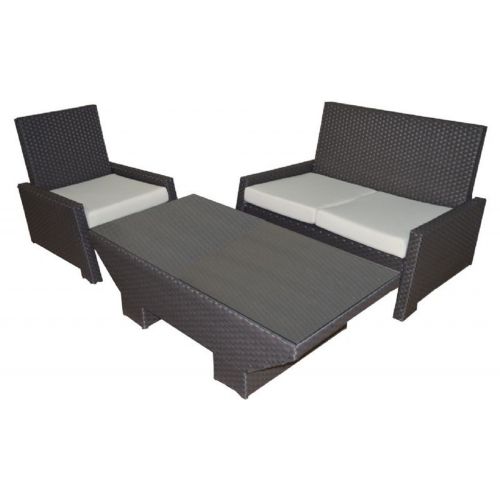 The Ashton outdoor sofa set has a sleek and modern design ideal for patio, poolside or deck. It features a sturdy aluminum frame covered with all weather dark brown wicker. Durable and comfortable outdoor cushions.