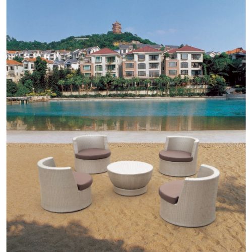 The Tower Set is comfortable and spacious. The chairs and table are designed to be stacked in a tower when not in use. This set includes 4 chairs and a rounded center table. Dark brown wicker design is contemporary and durable. Easy to store. All weather wicker is perfect for backyards and patios.