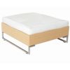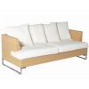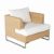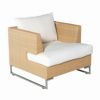 Luxor outdoor deep seating set. Modern italian design. Contemporary, high end, modular deepseating outdoor furniture. Structure in aluminum, covered with outdoor wicker wowen to perfection. All weather wicker is similar to natural fibre but totally resistant to outdoors. Outdoor wicker available in white wisp, natural and dark brown. Cushions available in Sunbrella natural. Seat and back cushions included. Set includes one sofa, two club chairs, one ottoman, and one rectangle coffee table.