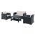 Rattan Gray Monaco four piece deep seating set with a two seater loveseat sofa, two club chairs and one coffee table. Wickerlook patio furniture is made with open weave design that resembles traditional woven wicker furniture. Unlike any other woven furniture in the market this weave will never unravel. Made for commercial durability. UV treated. Hose down for cleaning. Made for outdoors. Withstands outdoor temperatures summer and winter. Certified for strict European standards by CATAS Italian research institute and test laboratory. Cushions included in Natural.