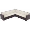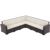 Monaco brown corner sectional eight piece set with cushions. Sectional set includes one corner, one left arm, one right arm, four middle units and a lounge table. Wickerlook patio furniture is made with open weave design that resembles traditional woven wicker furniture. Unlike any other woven furniture in the market this weave will never unravel. Made for commercial durability. UV treated. Hose down for cleaning. Made for outdoors. Withstands outdoor temperatures summer and winter. Certified for strict European standards by CATAS Italian research institute and test laboratory. Two person assembly required.