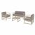 Mykonos lounge set with 100% acrylic taupe cushions includes two club chairs, one loveseat and one coffee table. Modular contemporary design with commercial strength. Made from commercial grade polypropylene resin. Collection items are perfect for heavy use areas. Casual and modern design make it suitable for indoors and outdoors. Cushions are made with 100% acrylic fabric with 4 inch thick high density foam. Polypropylene frame resists sun, oils, chlorine and all outdoor conditions. Certified for strict European standards by CATAS Italian research institute and test laboratory.