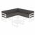 Mykonos lounge set with 100% acrylic charcoal cushions includes a five-seat corner sectional and one coffee table. Modular contemporary design with commercial strength. Made from commercial grade polypropylene resin. Collection items are perfect for heavy use areas. Casual and modern design make it suitable for indoors and outdoors. Cushions are made with 100% acrylic fabric with 4 inch thick high density foam. Polypropylene frame resists sun, oils, chlorine and all outdoor conditions. Certified for strict European standards by CATAS Italian research institute and test laboratory.