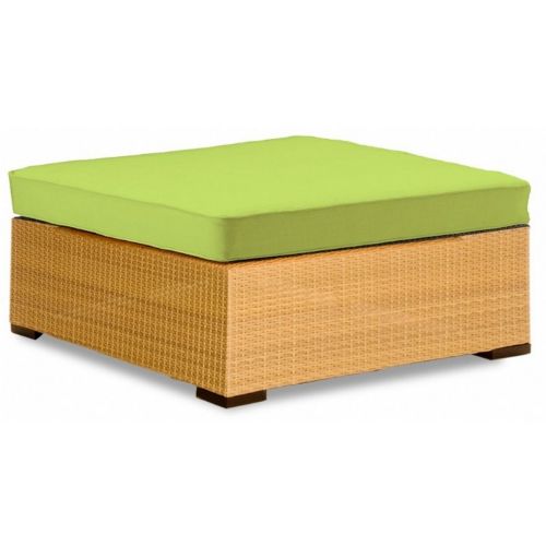 Point Dome outdoor wicker sectional ottoman from Caluco. Contemporary and modern outdoor furniture design. Made from Viro outdoor wicker over strong extruded powder coated aluminum frame. Maintenance free. Can be washed down with water. Totally outdoor resistant. Cushions are made from Sunbrella fabric and durable for outdoor use. Seat and back cushions included. Wicker available in Wheat only. Cushions are 4 inch thick.