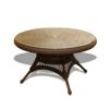 Sea Pines collection five piece outdoor deep seating set from Tortuga Outdoor. Traditional wicker set offers classic designs with extreme all weather durability. With its extra large, comfy wicker seating and thick cushions this set is perfect for any outdoor dining occasion. Collection items feature powder coated aluminum frames, UV stabilized all weather wicker, and 100% spun polyester, mildew and fade resistant outdoor cushions. Generous sizes in chairs provides extra comfort. Traditional looks for a classic comfort. Set includes four club chairs, one 42 inch round table with tempered glass top. Wicker offered in coffee brown. Table has umbrella hole.