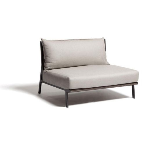 Vieques modern outdoor sectional furniture center module. European luxury through contemporary design. Structure in aluminum with synthetic outdoor fabric sling. Thick cushions for ultimate comfort. Totally resistant to outdoors, rain, sun and snow. Frame in manganese color. Synthetic sling in brown beige color. Cushions have a laminated lining for 100% water protection. Cushions in taupe color. Cushions included in price.
