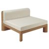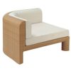 XXL sectional outdoor deep seating set includes seven modular pieces. Contemporary, high end, modular deepseating outdoor furniture with very generous sizes. Extra wide and deep units allow unsurpassed outdoor seating comfort. Modular design enables different settings. Connectors keep modules aligned. Legs have levelers for uneven surfaces. Corner units are universal and can be used for both left or right. Collection items are 100% outdoors resistant. Wicker that withstands any weather is braided by hand. Easy cleaning. Xxl outdoor furniture can even be hosed down for cleaning. Xxl collection is suitable for use as indoor and outdoor furniture. Features superior quality in braided synthetic wicker over aluminum tubing. Very comfortable and light. Xxl deep seating set is a perfect choice for large outdoor areas. Wicker available in natural and chocolate etna. Cushions available in all sunbrella colors. Cushions are made from outdoor resistant Sunbrella fabric. Set includes one club chair, two corner units, two mid sections, one ottoman and one center table.
