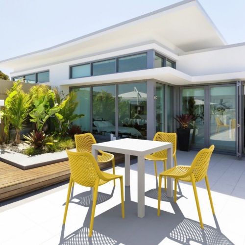 Air Mix Square Dining Set with White Table and 4 Yellow Chairs