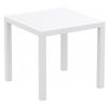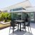 Air resin dining set with four chairs and one square table. Made for commercial durability. Chairs are stackable. UV treated. Hose down for cleaning. Withstands outdoor temperatures summer and winter. Table has levelers for uneven surfaces. No metal parts. Chairs are heavier than most resin chairs of its type. Dining set is perfect for heavy use areas. Set items are 100% resistant to outdoors, sun, snow, salt. Resin is virtually maintenance free.