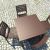 Brown Ares resin dining set with 4 chairs and one square dining table. Super sturdy commercial strength. Chairs are made from commercial grade resin with gas injection molded legs. Both chairs and table offer 100% polypropylene construction. No metal parts. Chairs are heavier than most resin chairs of its type. Dining set is perfect for heavy use areas. Set items are 100% resistant to outdoors, sun, snow, salt. Resin is virtually maintenance free.