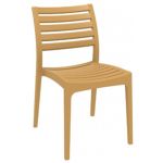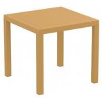 Cafe Latte Artemis resin dining set with 4 arm chairs and one square dining table. Super sturdy commercial strength. Chairs are made from commercial grade resin with gas injection molded legs. Both chairs and table offer 100% polypropylene construction. No metal parts. Chairs are heavier than most resin chairs of its type. Dining set is perfect for heavy use areas. Set items are 100% resistant to outdoors, sun, snow, salt. Resin is virtually maintenance free.