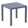 Dark Gray Artemis resin dining set with 4 arm chairs and one square dining table. Super sturdy commercial strength. Chairs are made from commercial grade resin with gas injection molded legs. Both chairs and table offer 100% polypropylene construction. No metal parts. Chairs are heavier than most resin chairs of its type. Dining set is perfect for heavy use areas. Set items are 100% resistant to outdoors, sun, snow, salt. Resin is virtually maintenance free.