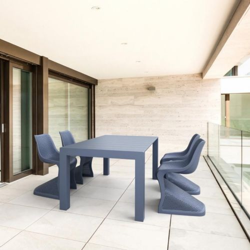 Siesta LogoBloom extendable patio dining set with four dining chairs and one dining table that extends from 70 inches to 86 inches. Contemporary design combined with commercial strength. Made from marine grade polypropylene resin reinforced with fiber glass. So elegant that it is suitable for indoors, so durable that it is used outdoors. Perfect for heavy use areas. Certified for strict European standards by CATAS Italian research institute and test laboratory.