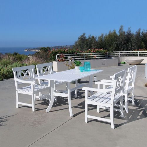 Bradley 5-piece wood patio dining set with 4 contoured back chairs white is designed to be maintenance free. Every piece is carefully Finished with a beautiful, multi-coated and weather-resistant paint that will not fade due to over exposure in the sun. It will maintain its new look from the first day and for years to come.