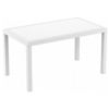 California Wickerlook white resin dining set with four dining arm chairs and one 55 inch rectangle dining table. Unlike any other woven furniture in the market Wickerlook furniture will never unravel. Chairs have no metal parts to rust, no moving parts that can break. Made for commercial durability. Perfect for home use or hotels and restaurants. UV treated. Hose down for cleaning. Withstands outdoor temperatures summer and winter. Chairs are 23 lbs and great for balcony use or in windy areas. Table doesn't have an umbrella hole. Chairs certified for strict European standards by CATAS Italian research institute and test laboratory.