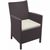 California Wickerlook resin dining set with four dining arm chairs and one 31 inch square dining table. Unlike any other woven furniture in the market Wickerlook furniture will never unravel. Chairs have no metal parts to rust, no moving parts that can break. Made for commercial durability. Perfect for home use or hotels and restaurants. UV treated. Hose down for cleaning. Withstands outdoor temperatures summer and winter. Chairs are 23 lbs and great for balcony use or in windy areas. Table doesn't have an umbrella hole. Chairs certified for strict European standards by CATAS Italian research institute and test laboratory. 100% acrylic natural cushions included.