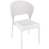 Daytona resin patio dining set with four dining chairs and one square table. Unlike any other woven furniture in the market Wickerlook furniture will never unravel. Made for commercial durability. Chairs are stackable. UV treated. Hose down for cleaning. Withstands outdoor temperatures summer and winter. Chairs certified for strict European standards by CATAS Italian research institute and test laboratory.