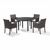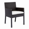 Dijon outdoor wicker dining set includes four dining arm chairs, one 48 inch round table. Contemporary and modern patio furniture design. Made from all weather outdoor wicker over strong extruded powder coated aluminum frame. Maintenance free. Can be washed down with water. Totally outdoor resistant. Table has a glass top. Cushions are made from 100% acrylic fabric and durable for outdoor use. Seat cushions included. Wicker available in Espresso only. Cushions are 2 inch thick.