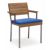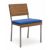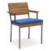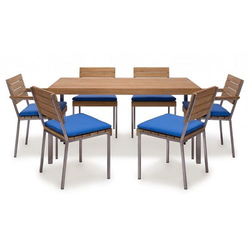 Grace outdoor dining set with two armchairs, four side chairs and one 60 inch rectangle table. Strong stainless steel and grade A teak structure with two inch Sunbrella seat cushions. Dining chairs are made of high quality natural teak over stainless steel frames. Stainless steel won't chip, flake or scratch. Perfect for outdoors and patio. Cushions are made of Sunbrella fabric and available in multiple colors. Cushion included in price. Teak is natural and requires oiling periodically.