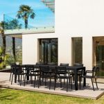 Siesta LogoHelen 9 piece extendable dining set with eight chairs and one rectangle table. Chairs and table top made from marine grade polypropylene. Great for outdoor spaces, patios and decks. Used by restaurants, cafes and hotels.