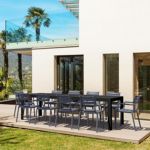 Helen 9 piece extendable dining set with eight chairs and one rectangle table. Chairs and table top made from marine grade polypropylene. Great for outdoor spaces, patios and decks. Used by restaurants, cafes and hotels.
