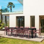 Helen 9 piece extendable dining set with eight chairs and one rectangle table. Chairs and table top made from marine grade polypropylene. Great for outdoor spaces, patios and decks. Used by restaurants, cafes and hotels.