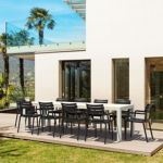 Siesta LogoHelen 9 piece extendable dining set with eight chairs and one rectangle table. Chairs and table top made from marine grade polypropylene. Great for outdoor spaces, patios and decks. Used by restaurants, cafes and hotels.