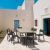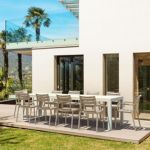 Helen 9 piece extendable dining set with eight chairs and one rectangle table. Chairs and table top made from marine grade polypropylene. Great for outdoor spaces, patios and decks. Used by restaurants, cafes and hotels.