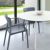 Lisa patio dining set with white Maya round table 47 inch and Lisa armchairs. Maya HPL laminated table top with the latest generation of airmoulding thermoplastic legs. Very strong and heavy. Lisa resin dining armchairs offer modern design combined with commercial strength. Dining set can be used in modern or traditional settings indoor or outdoor. Chairs made from marine grade resin with gas injection molded legs. Smooth seat and back for easy cleaning. Set is great for patios, balconies, garden and poolside dining. Accomodates four guests. Chairs are stackable. Certified for strict European standards by CATAS Italian research institute and test laboratory.