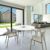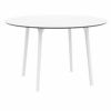 Lisa patio dining set with white Maya round table 47 inch and Lisa armchairs. Maya HPL laminated table top with the latest generation of airmoulding thermoplastic legs. Very strong and heavy. Lisa resin dining armchairs offer modern design combined with commercial strength. Dining set can be used in modern or traditional settings indoor or outdoor. Chairs made from marine grade resin with gas injection molded legs. Smooth seat and back for easy cleaning. Set is great for patios, balconies, garden and poolside dining. Accomodates four guests. Chairs are stackable. Certified for strict European standards by CATAS Italian research institute and test laboratory.