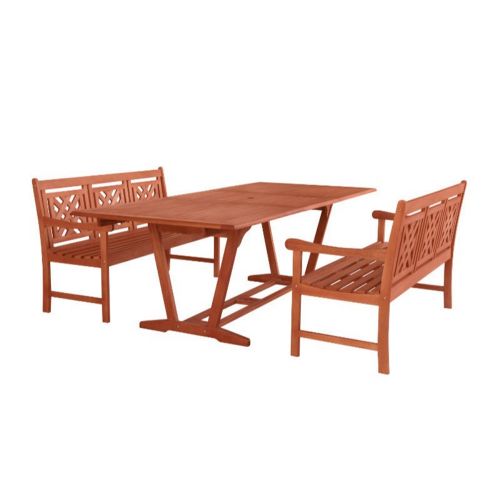 Malibu Outdoor 3-Piece Wood Patio Extendable Table Dining Set V232SET48