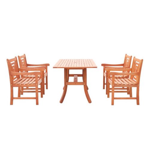 Malibu Outdoor 5-Piece Wood Patio Dining Set with Curvy Leg Table V189SET16